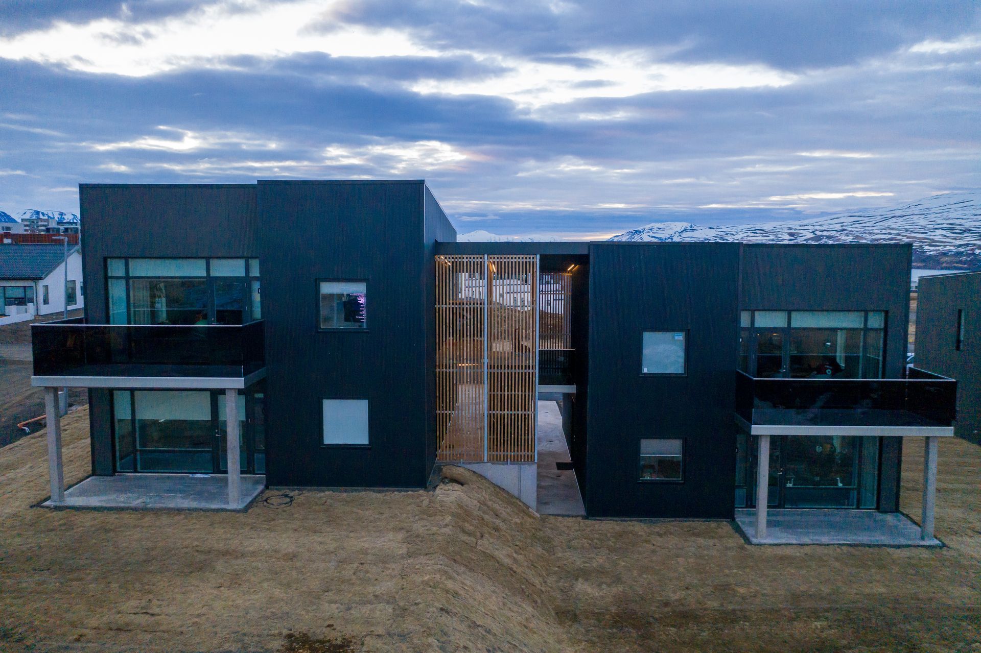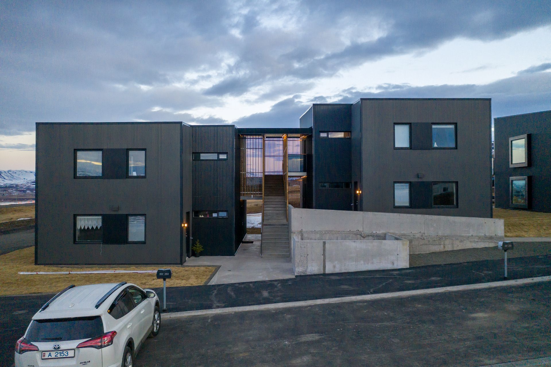 Byggingalistaverðlaun Akureyrar 2020 hlaut Anna Margrét Hauksdóttir arkitekt FAÍ, AVH ehf. og Bergfesta byggingarfélag fyrir útfærslu fjölbýlishúsa við Halldóruhaga 8, 10, 12 og 14. Húsagerðin er tveggja hæða fjórbýlishús með útitröppum. Húsunum er skipt upp í tvíbýliseiningar, tveim og tveim saman með opnum stigum á milli. Útistigar njóta skjóls undir þaki og á bak við rimlaverk og eru því ekki meginatriði í útliti húsanna eða götumyndinni. Húsaeingarnar eru skásettar þannig að þær mynda fjölbreytta og áhugaverða húsaröð, sem er undirstrikuð með sérstöku meginformi húsanna,“ segir í tilkynningu frá Akureyrarbæ.