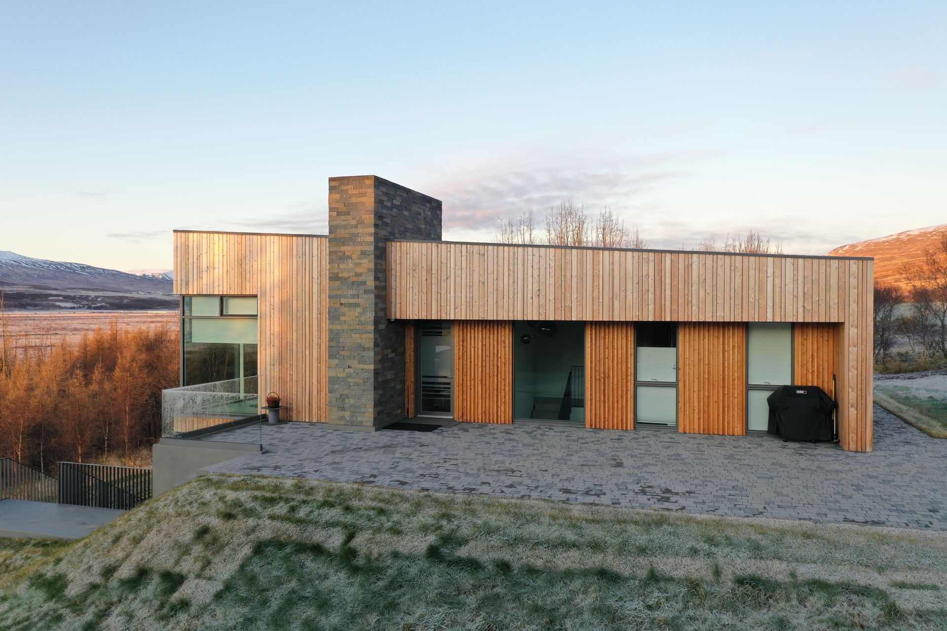 Húsið að Gröf IV í Eyjafjarðarsveit er steypt bygging klædd viði sem fellur vel að umhverfi sínu. Hönnunin byggir á einföldu og skýru formi þar sem efnisval og litir taka mið af náttúrunni í kring.