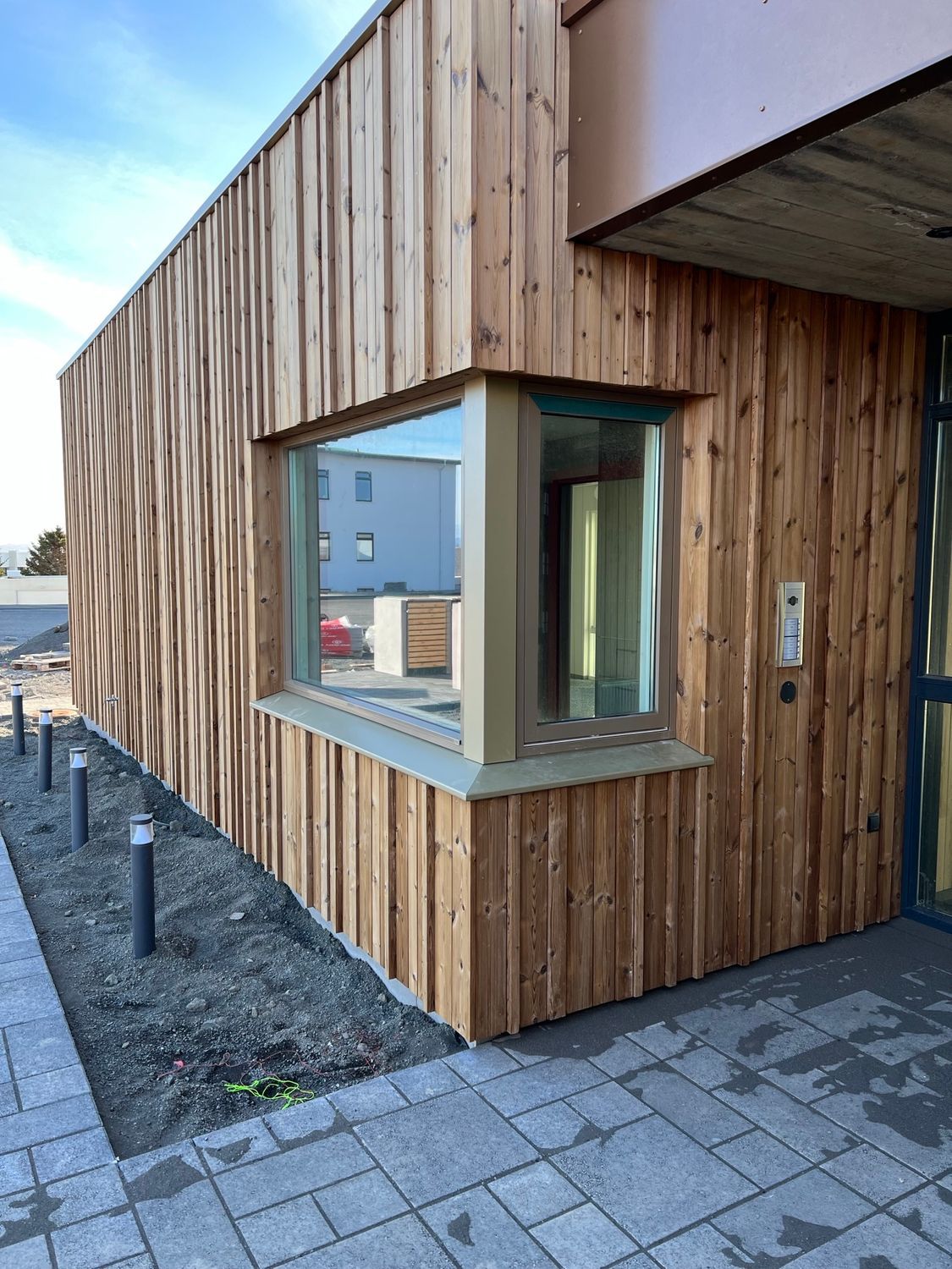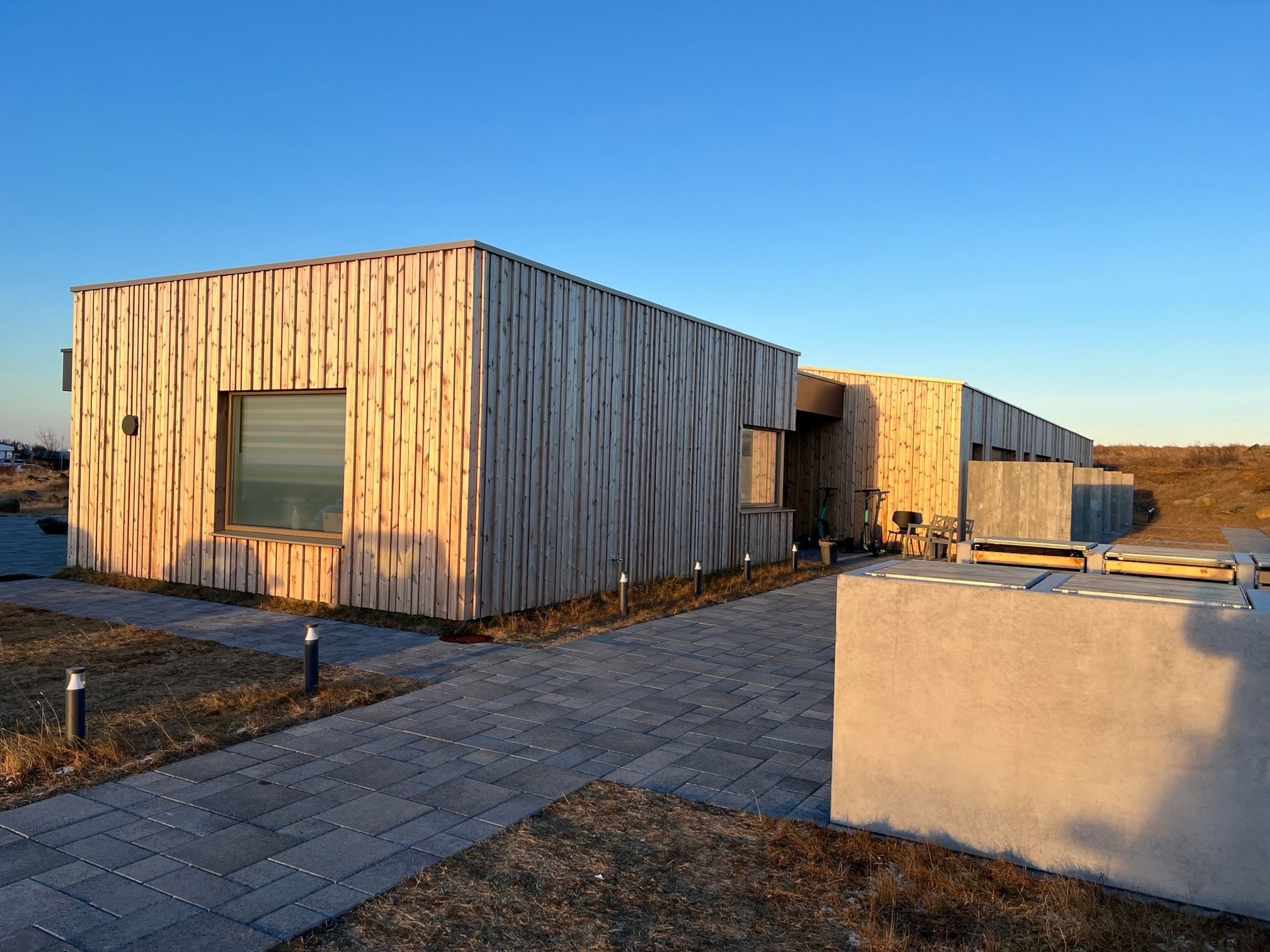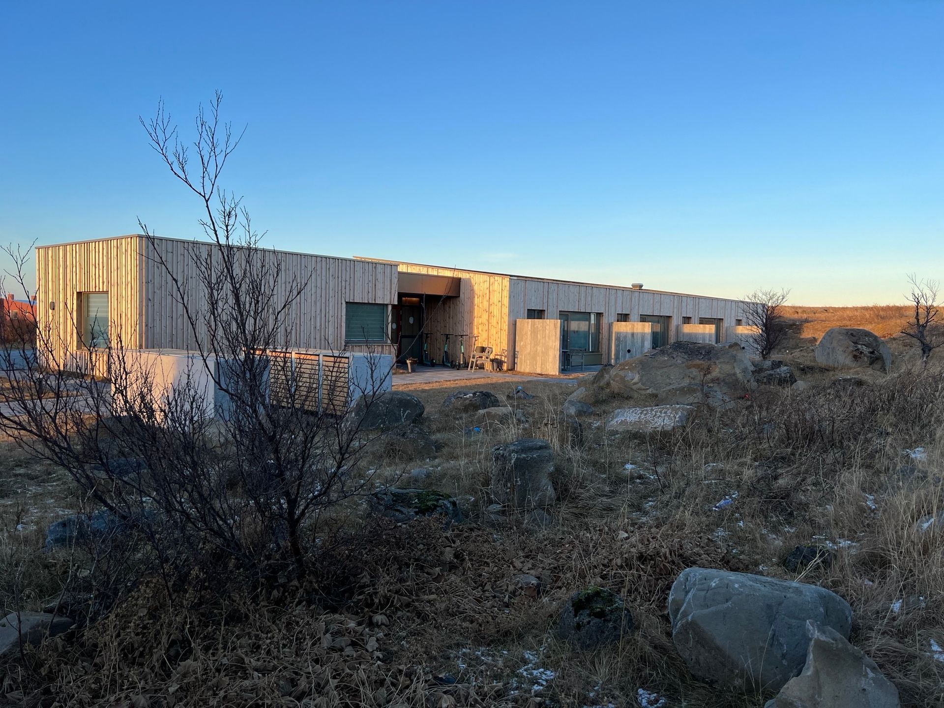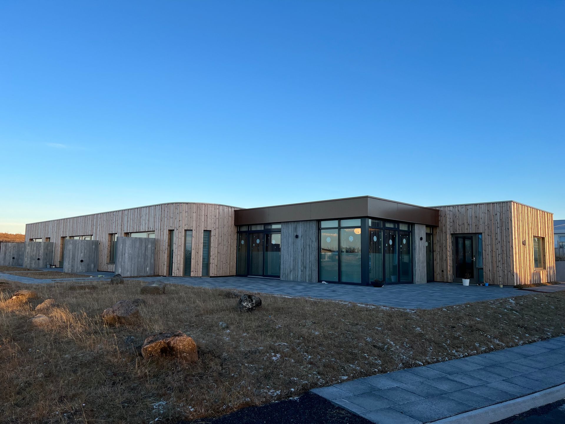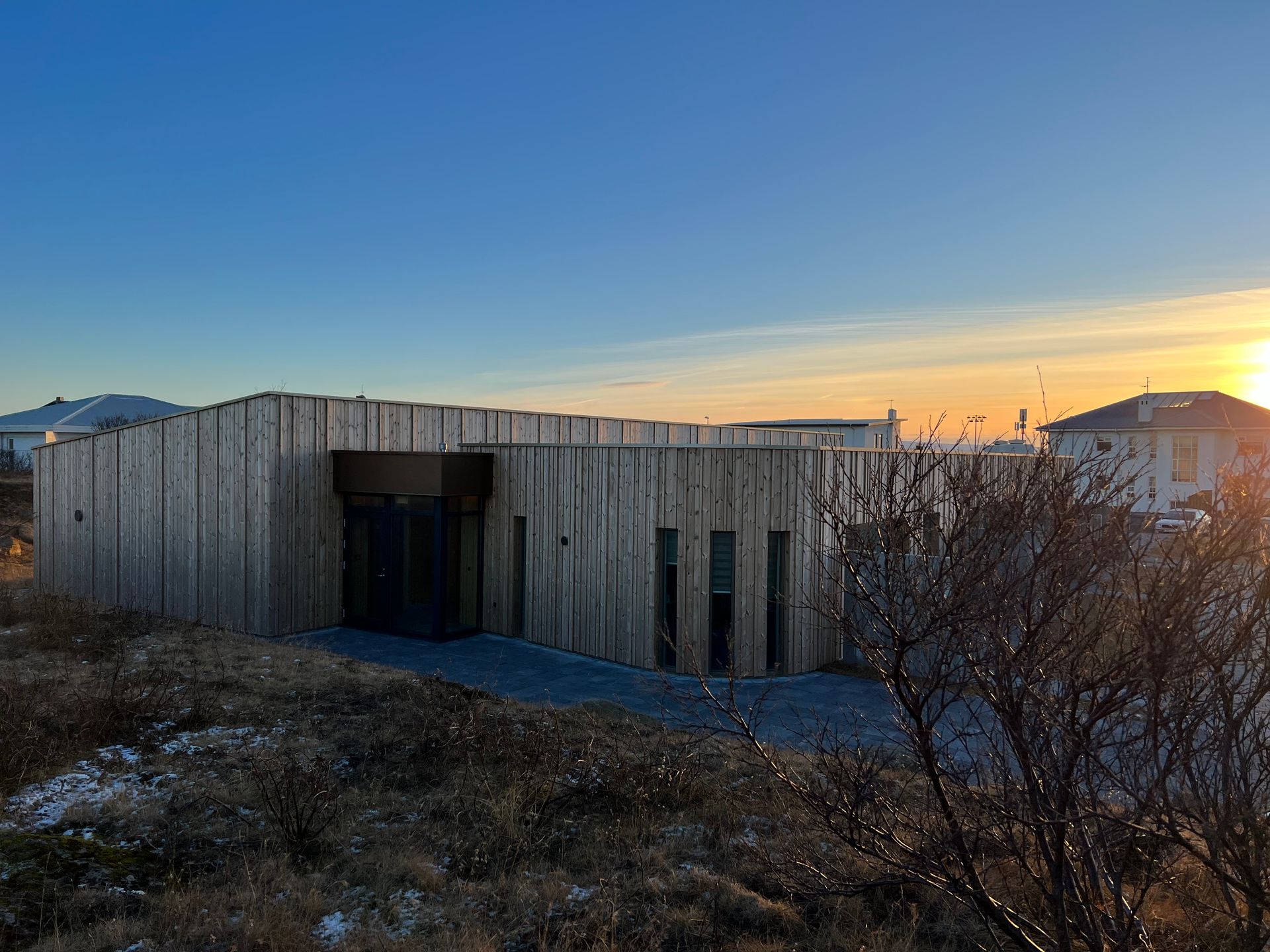 Byggingin er á einni hæð, staðsteypt og klædd timbri. Skipulag byggingarinnar byggir á skýrri rýmisgreiningu þar sem einkarými og sameiginleg rými mynda jafnvægi milli næði og samveru.