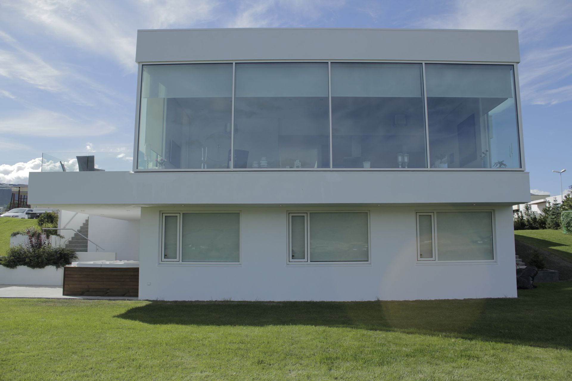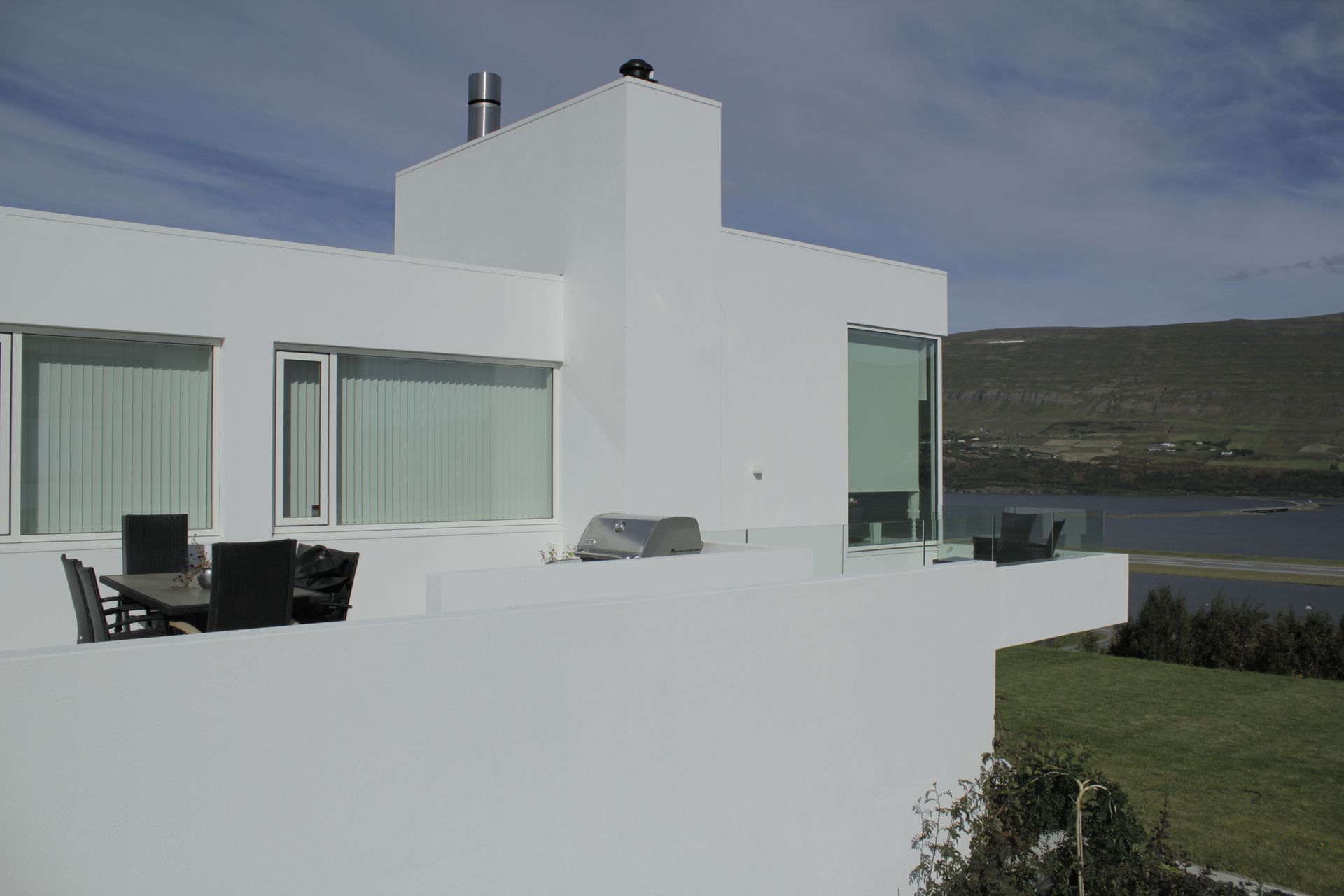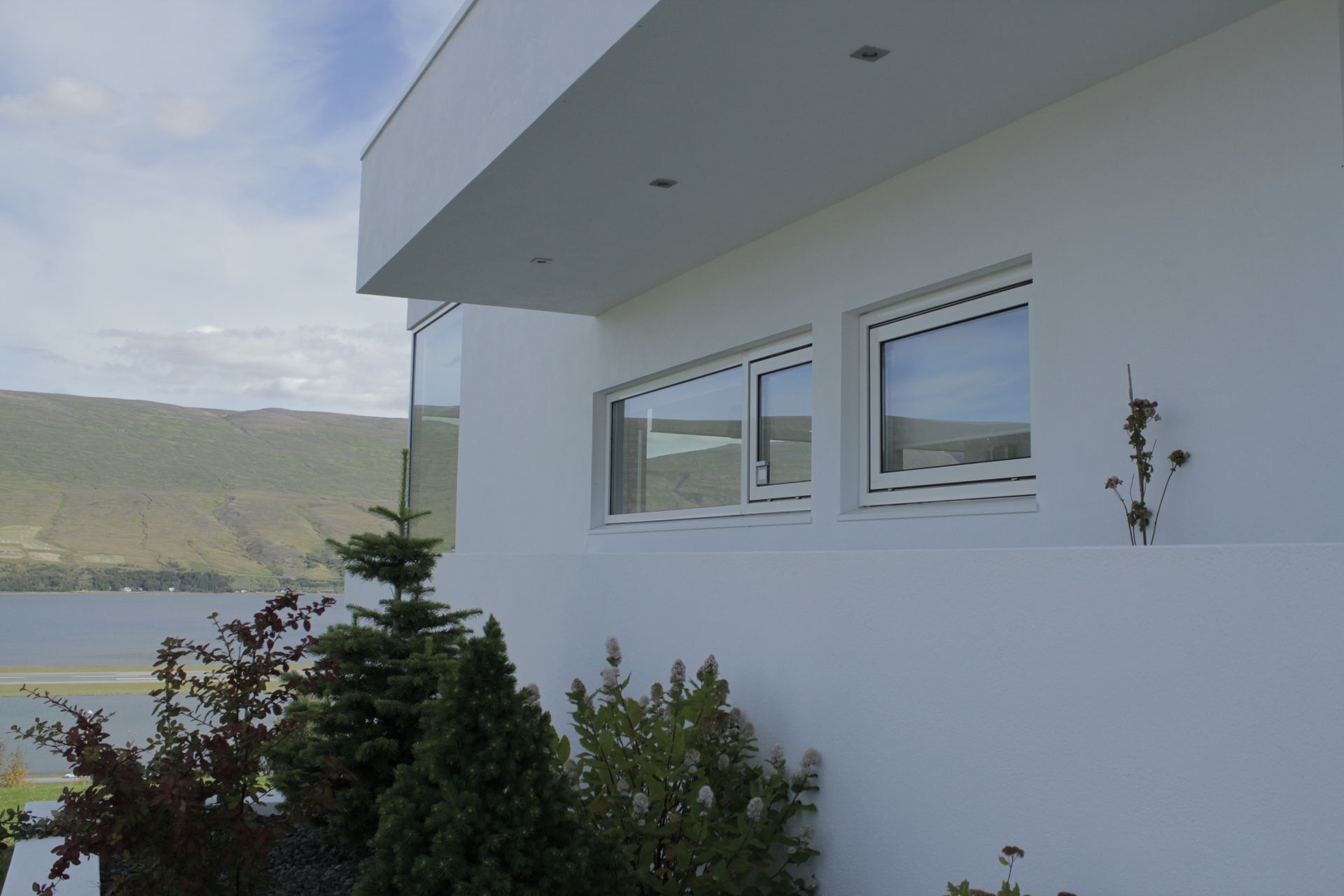Krókeyrarnöf 15 er einbýlishús á tveimur hæðum með fallegu útsýni yfir eyjafjörð. Hönnun byggir á sterkri tengingu við landslagið, þar sem gluggar, rýmisskipan og útisvæði eru samofin þannig að útsýnis nýtur bæði innan húss og utan.