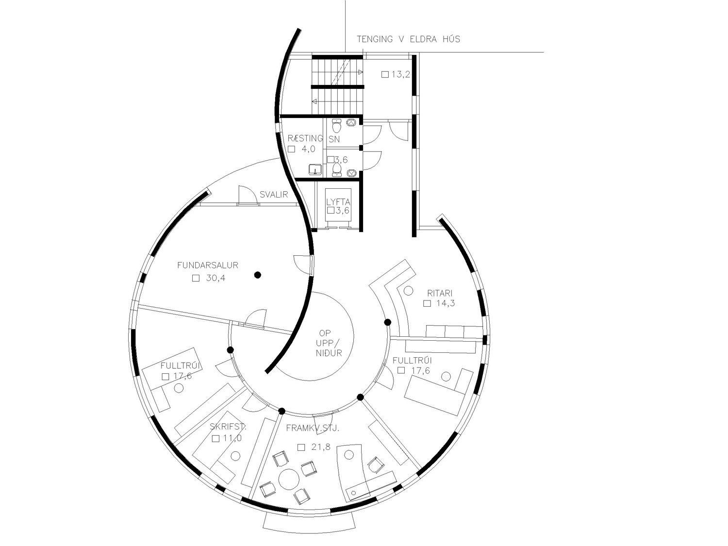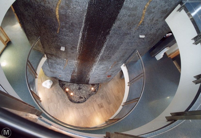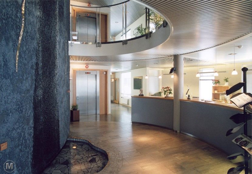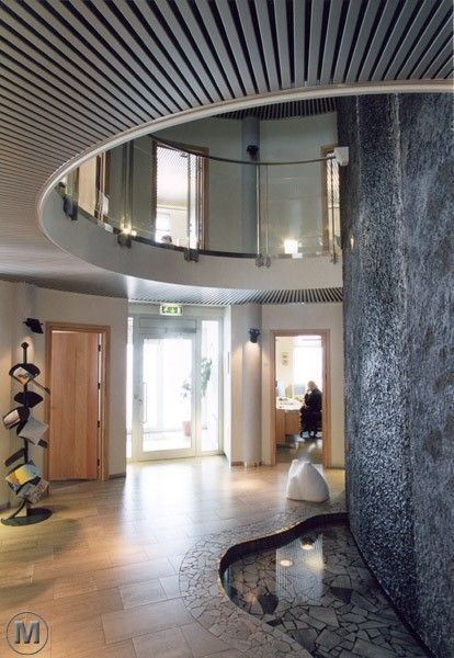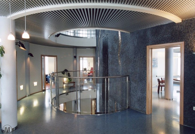 Hús Norðurorku á Rangárvöllum á Akureyri einkennist af skýru, hringlaga formi þar sem starfsemin er skipulögð í kringum miðlægt rými. Í miðju byggingarinnar er foss sem myndar hjarta hússins og tengir saman ólíkar einingar þess. Skipulagið stuðlar að góðu flæði og skýrum tengslum milli rýma.